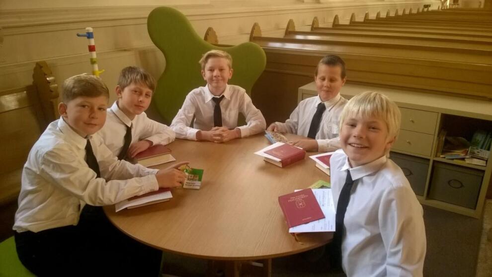 Vår lilla grupp består just nu av två pojkar 10-11 år. De träffas varje onsdag efter skolan och de brukar hänga i kyrkans café i samband med övningen. För det mesta umgås de runt sina datorer och fikar, ibland spelar de innebandy, fotboll eller leker allmänt i kyrkans gymnastiksal innan det är dax för sång.